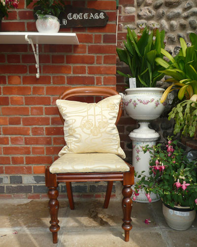 We have dressed some stunning rooms and windows in the homely settings in the Ancient House on the Holkham Estate. The items produced co-ordinate with the Mark Elliot displays. You may view our padded pelmet and drape in beautiful striped velvet by Swaffer fabrics, there are also stunning hand sewn cushions with trimmings which co-ordinate beautifully with this display.